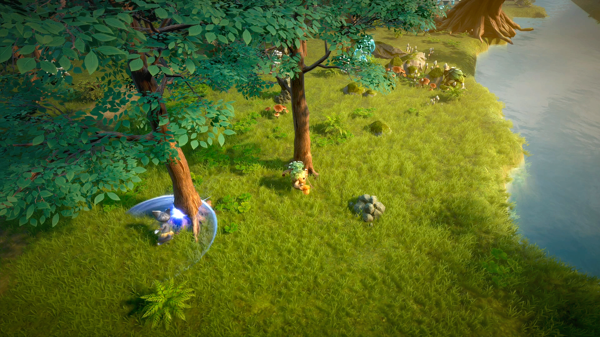 Production: Use creatures for activities: Revived stumps continuously produce purification fruits; Rock-devouring Frogs devour rocks for Ore; Bobcat Veterans with dual axes gather Wood efficiently; Gust-horn Hares consume Plants to obtain seeds.
