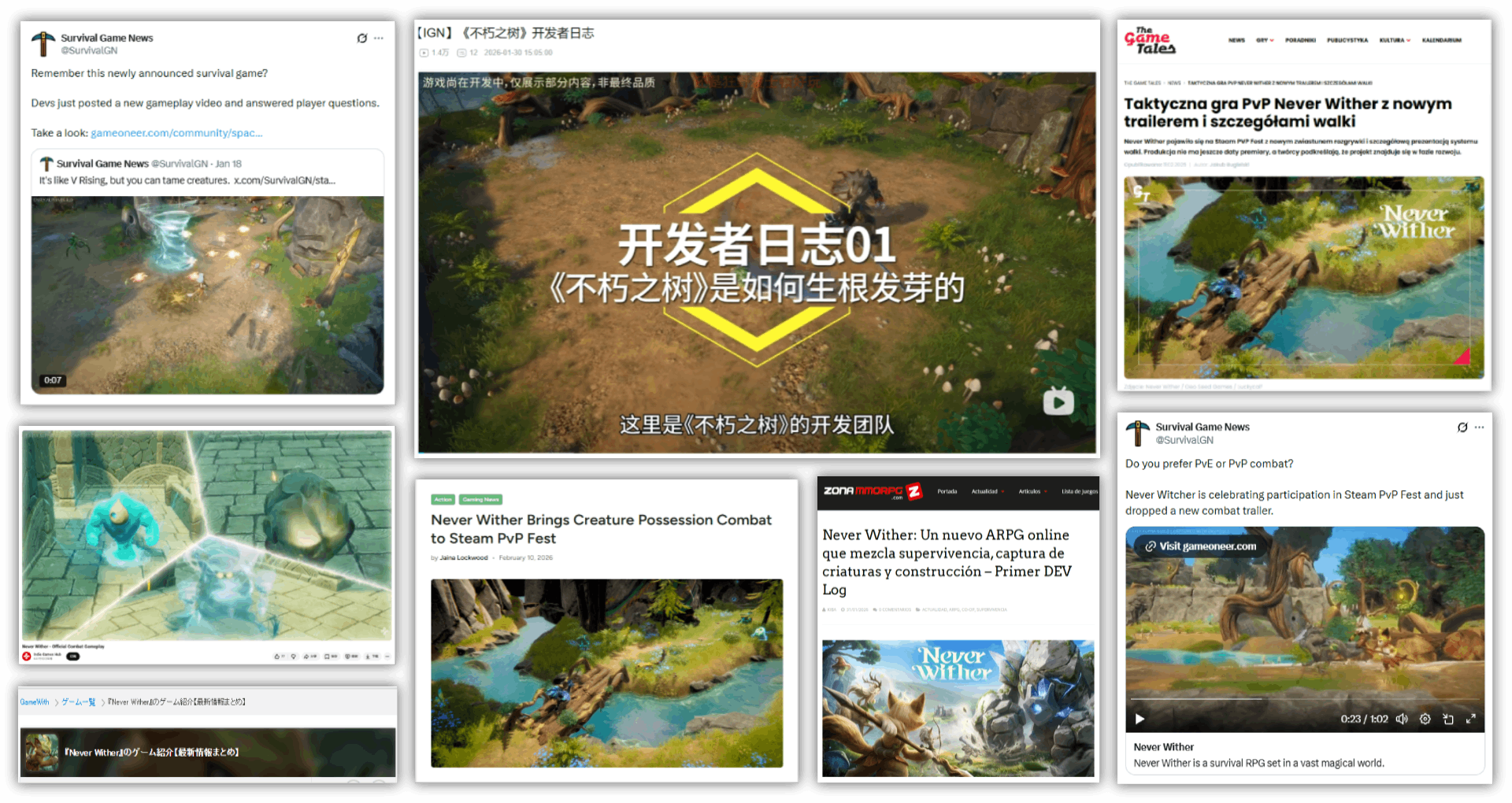 We also extend our thanks to media and content creators such as IGN China, Gameoneer, Indie Games Hub, and many others for covering Never Wither's recent news — this has helped more players understand our progress and goal.