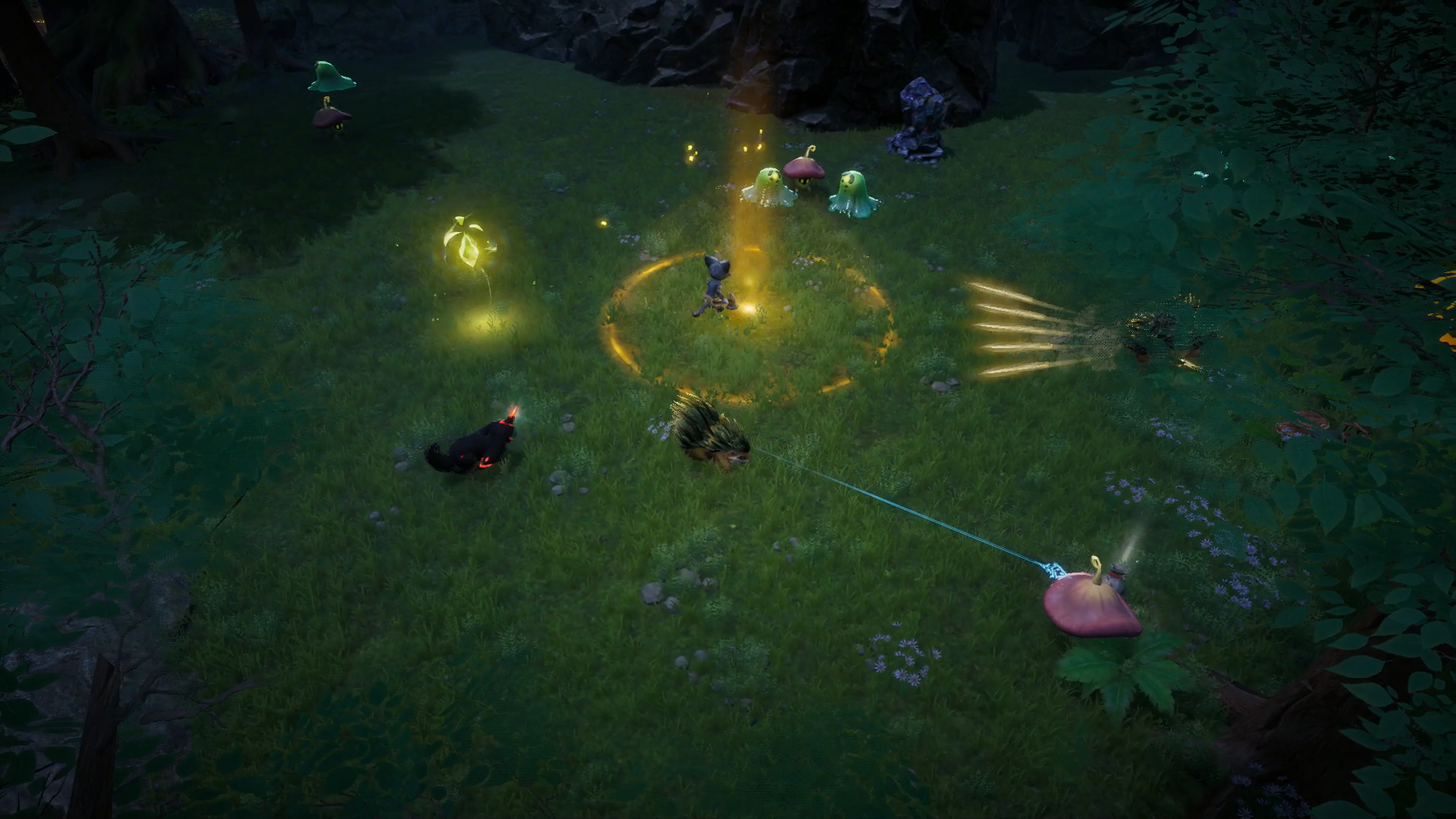 巨腹蛙可以吞下敵人並吐出去,與針毛獸等遠程夥伴搭配時,能保持安全的輸出距離。軟泥怪在移動時會留下減速粘液,在切換至其他夥伴後依然生效,可以輔助牽制敵人。個別生物還會因變異獲得獨特的能力變化,帶來更多的組合效果。