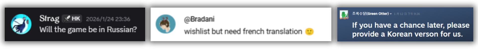 Bradani, Strag, Green Otter, ...:遊戲會支援法語/俄語/中文/韓語...嗎?