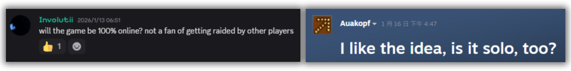 我們計劃推出專注於 PvE 或 PvP 的伺服器,並支援單人及本地連線模式,以滿足不同玩家的偏好。我們完全理解:比起節奏密集的多人對戰與基地突襲,許多玩家更喜歡與朋友一同享受慢節奏的建設、探索與戰鬥。在PVE模式中,即使你不喜歡與其他人戰鬥,也能在遊戲中找到屬於自己的樂趣。有關這些內容,我們在上期開發日誌中分享了更詳細的資訊,歡迎閱讀!